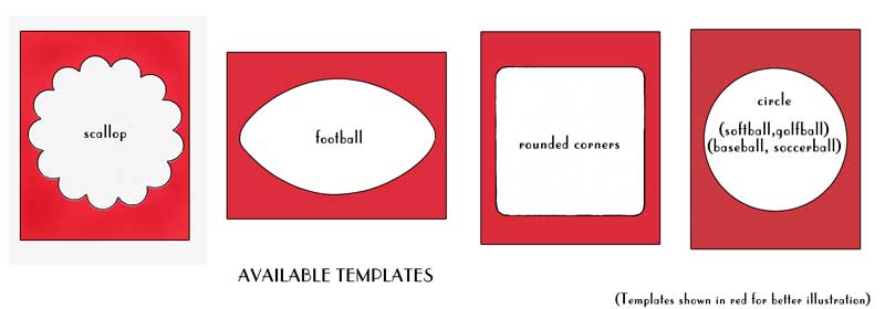 Comes in four die cut sizes, in the shape of a football, 7-inch circle, scallop or rounded square.