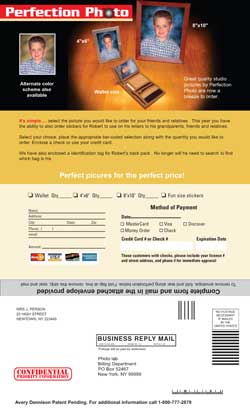Size pictured is 8.5x14 and this page shows the front and back. Minimum order 500 sheets.