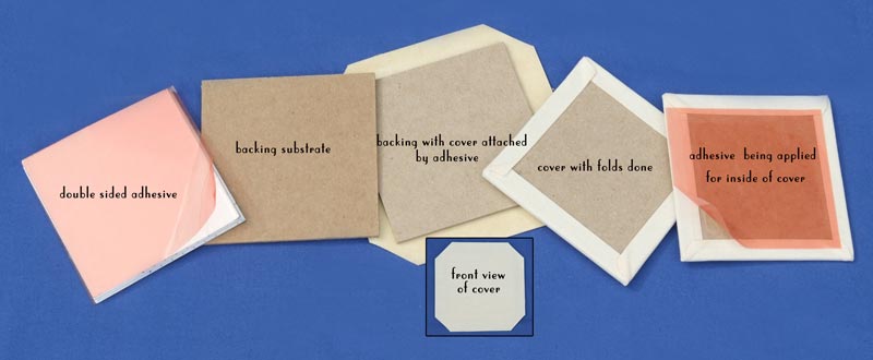This adhesive material is used to adhere photo paper or exterior cover substrate to cardboard front or last pages of photo albums.